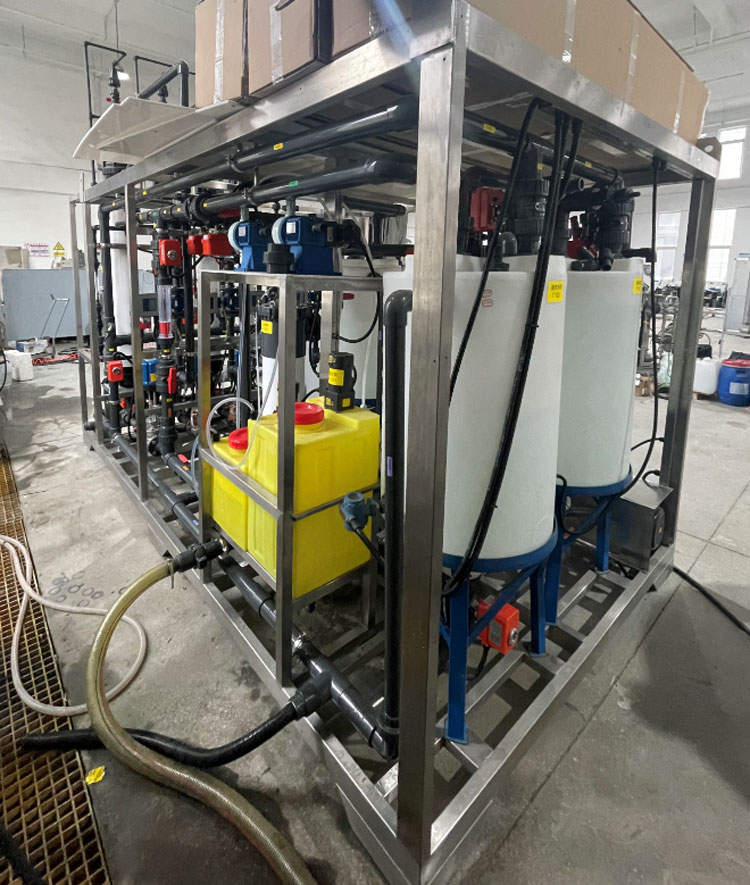 本文檔是為了說明ZW1500系統(tǒng)的一般操作流程。中試單元是在恒定進料/滲透流量下進行UF元件之間的平行試驗,并監(jiān)測各元件壓力隨時間的上升情況。中試裝置應能連續(xù)自動運行1個月,同時按規(guī)定的時間間隔進行過濾-反沖洗-化學保養(yǎng)清洗。反洗有多個步驟,請參考下面的工藝流程圖。該系統(tǒng)還應能夠進行空氣壓力試驗,進行纖維斷裂檢查。過濾采用死端過濾方式,因此產(chǎn)水流量等于進液流量。試驗裝置上4支超濾膜元件相對獨立,系統(tǒng)可根據(jù)需要運行1支、2支、3支或4支UF膜元件當試驗元件少于設計數(shù)量時,需要為進料和反沖洗泵設置回循環(huán)流量以防止溢流。進料槽水位由浮閥維持。由于這是一個中試裝置,預計將在不同的油田運行3 ~6個月,因此該系統(tǒng)應該能夠方便運輸,并且現(xiàn)場安裝較少。自動閥門、磁流量計、壓力傳感器及控制均可采用可靠的國產(chǎn)品牌,節(jié)約成本。關鍵部件的最低要求列在文件末尾,可根據(jù)現(xiàn)場操作情況進行修改。