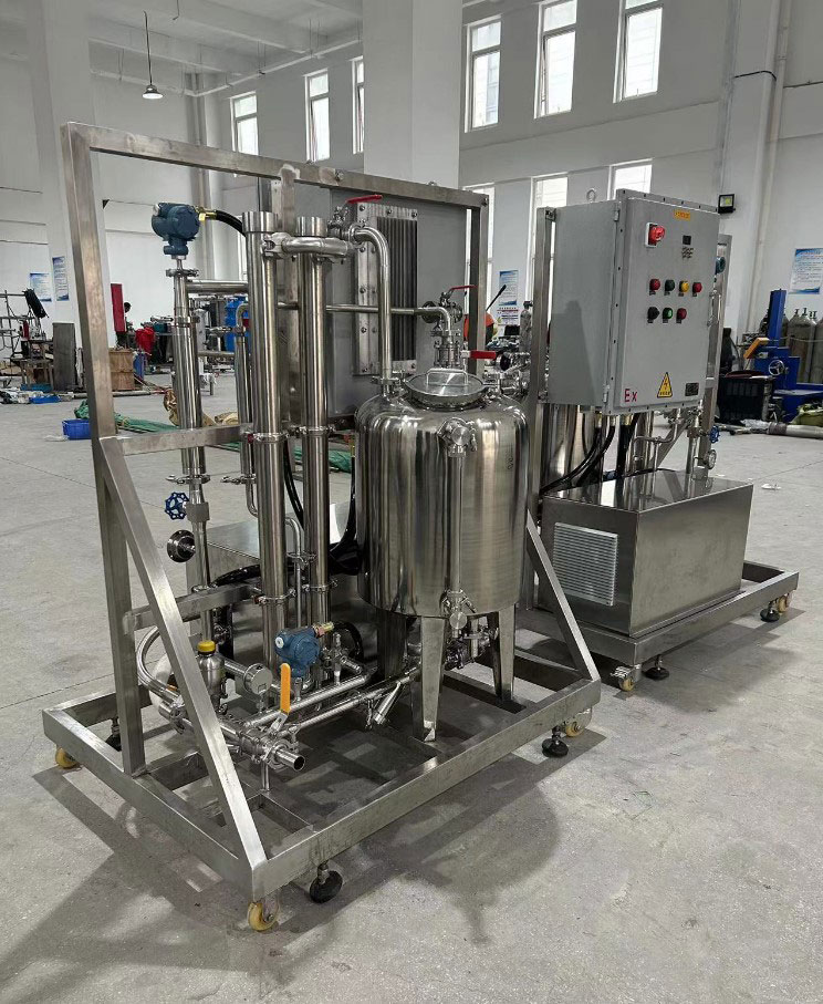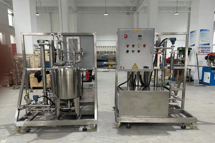 10.原水箱100L,304材質(zhì),正錐底,錐底加深有效減少循環(huán)體積,帶夾套控溫,進(jìn)冷凝水,改變循環(huán)水溫度穩(wěn)定控制料液溫度;