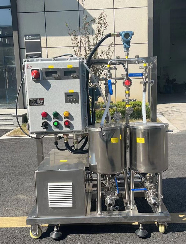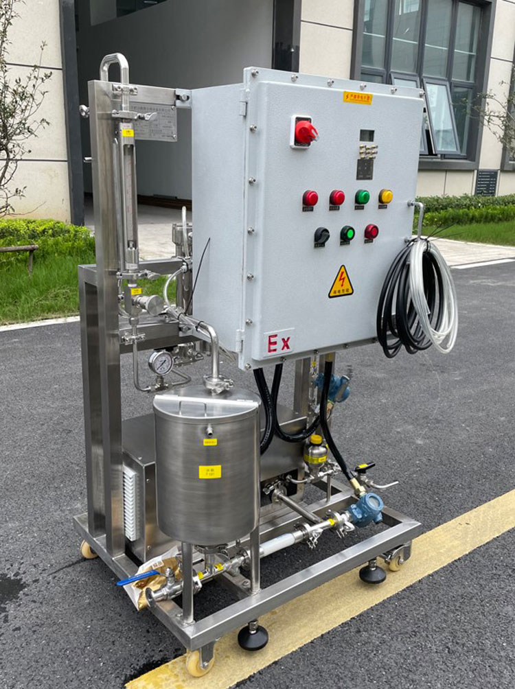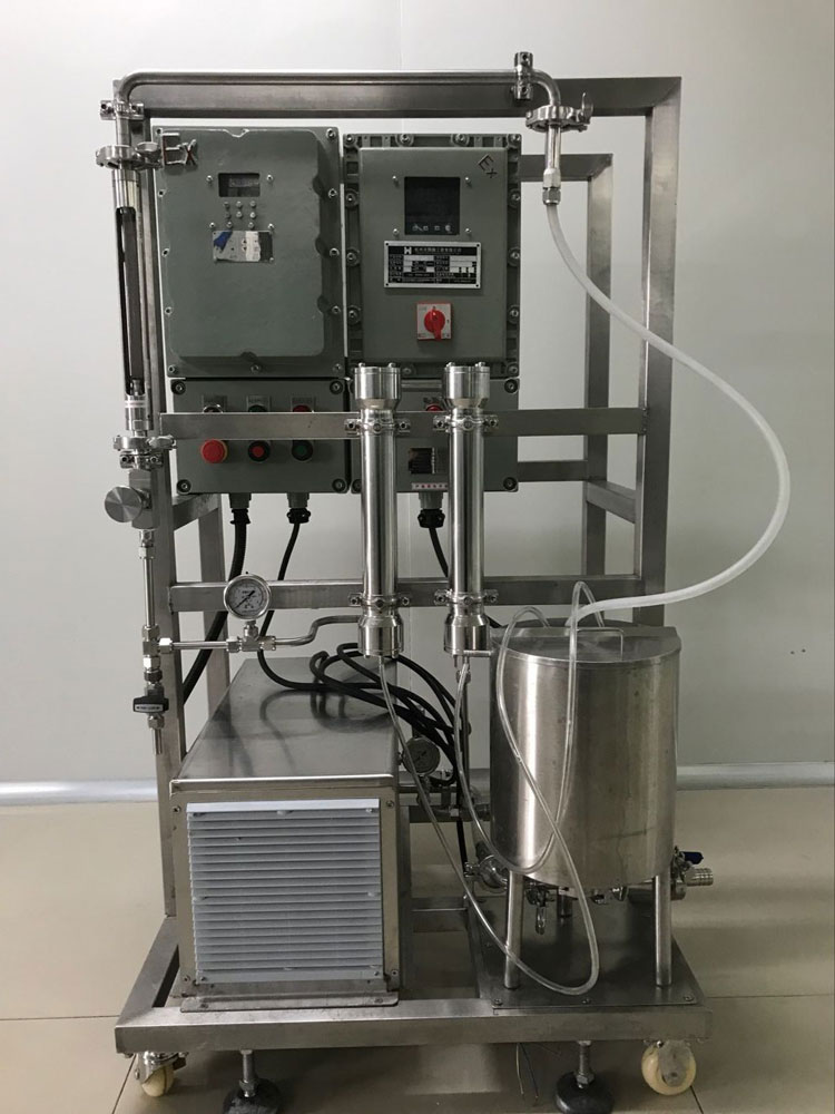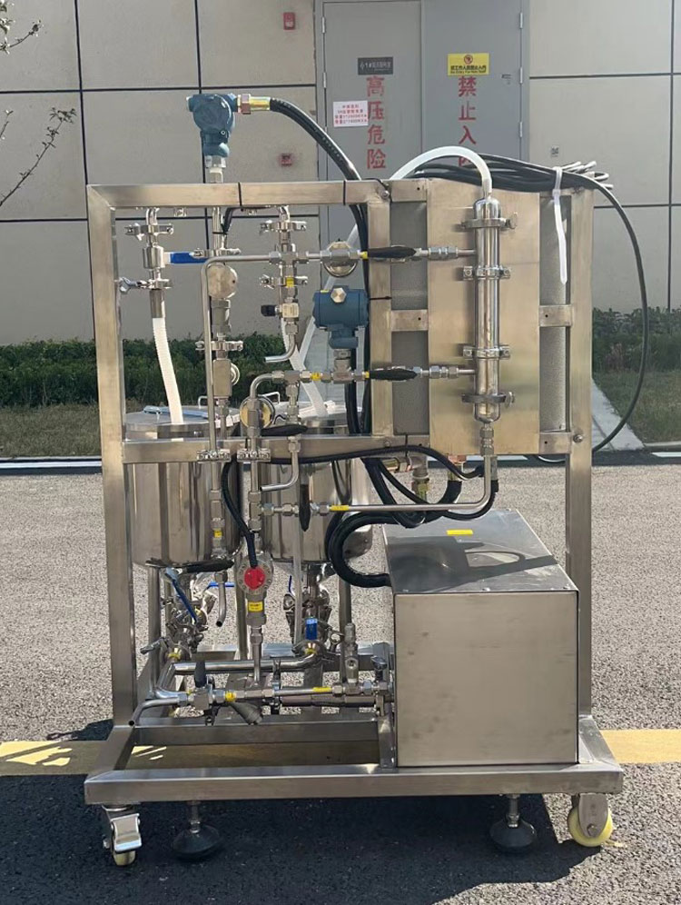 本設(shè)備主要用于確定料液分離純化的參數(shù)并確定其所能達(dá)到的效果及所得產(chǎn)品性能的優(yōu)劣等,為工業(yè)化系統(tǒng)提供設(shè)計依據(jù)。系統(tǒng)可適用于多種規(guī)格型號的卷式膜。本系統(tǒng)可以提供相當(dāng)廣的流量、壓力范圍。最高壓力41公斤,具有自動蓄能緩沖及泄壓等安全功能。
